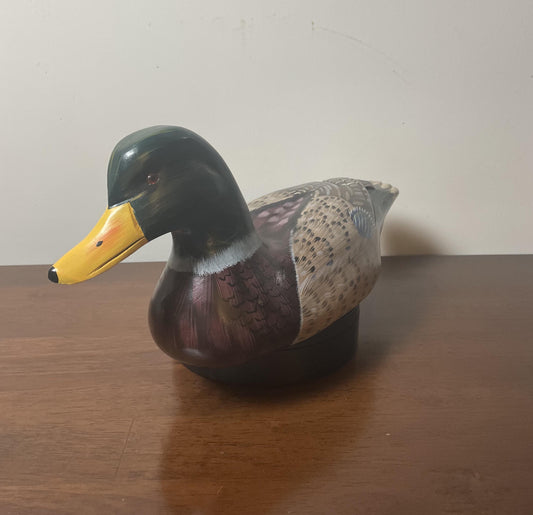 This vintage wooden duck decoy of a Rouen Clair duck (circa 1960) is hand-carved and hand-painted adding to its lifelike quality. It's in very good condition and beautiful (see pictures)....